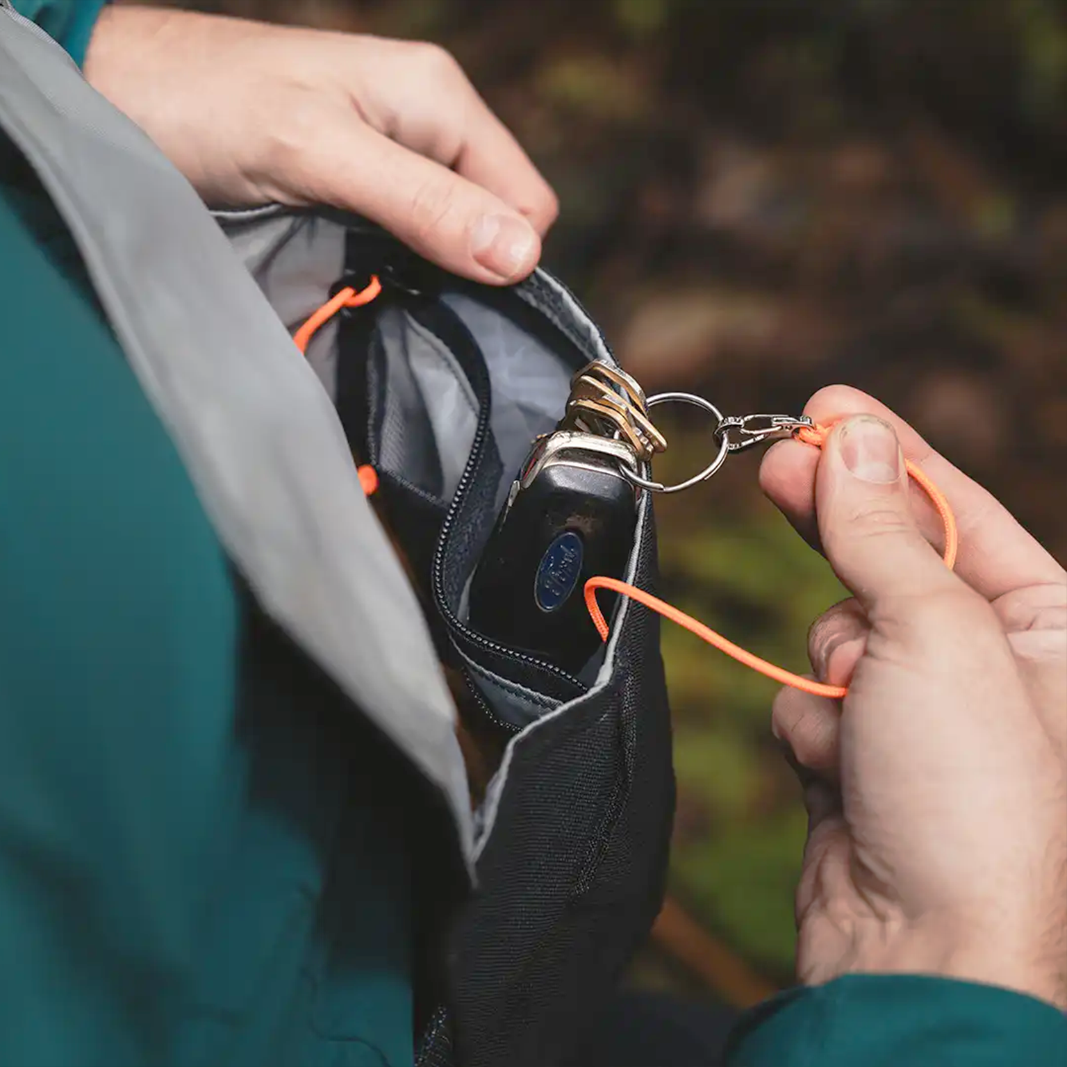 - Storage: One internal zippered pocket, two internal stretch pockets, and an internal phone sleeve pocket keep things organized, and a key lanyard makes sure car keys don’t wander away. Wing pockets on either side are great for small items that are accessed frequently.